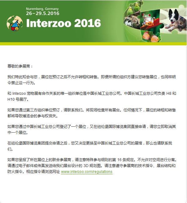 關(guān)于中國企業(yè)申請16年德國寵物展interzoo的聲明