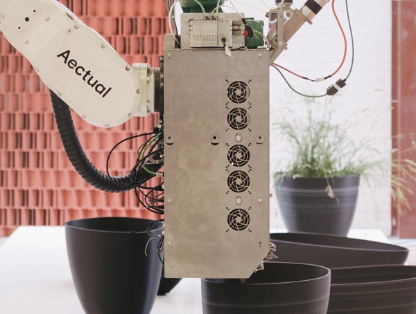 △Aectual公司的一臺3D打印機正在生產一個環保的花盆。圖片來自Aectual。