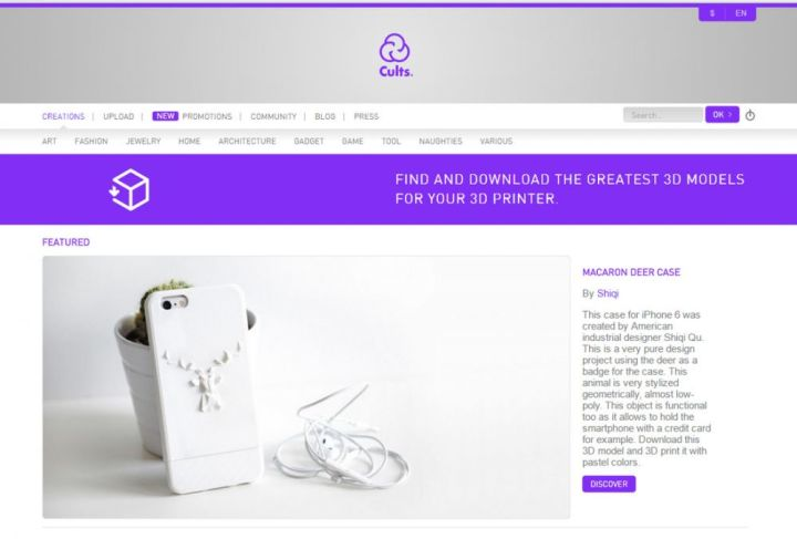 Cults 有免費及付費的3d模型下載。它是一個法國的網站,他們的賣點是所有3d模型的設計都非常漂亮,很多都由專業設計師設計。這網站設有英文語言,所以不用擔心看不懂。