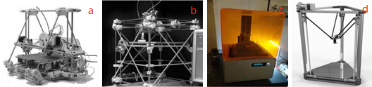 傳統的3D打印機,在日漸發展的3D打印中已經不能滿足打印需求,目前主流的3D打印機已經從之前的三自由度機構逐步向多自由度發展,3D打印機的噴頭機構也同樣在進行改變,從單口向多口發展。結構也不在局限于簡單的結構,目前已經有將5自由度的機械臂用于3D打印機,或者結合并聯結構增加工作平臺的自由度從而實現多自由的打印。