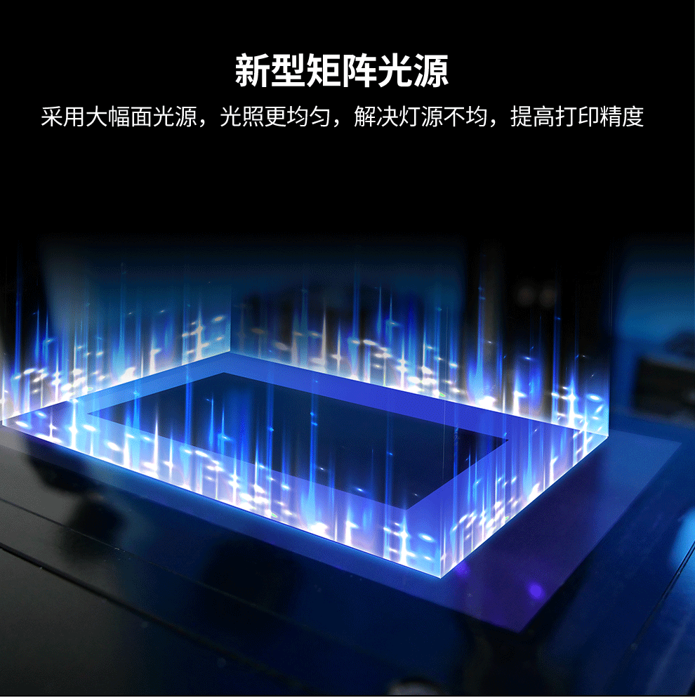 光源配置:UV平行光源(波長405nm)XY分辨率:4920*2880(像素點45微米)5K 10.1寸