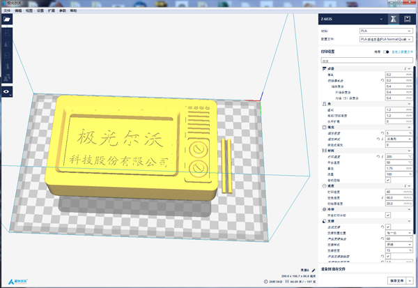 2、切片:在打印前,將電視機模型的主機與天線單獨保存成stl文件; 然后將stl文件導入切片軟件,設置層高、厚度、填充密度、打印速度、支撐等打印參數并保存成GCode文件,而后導入3D打印機即可開始打印。(切片軟件推薦:Cura /JGcreat)